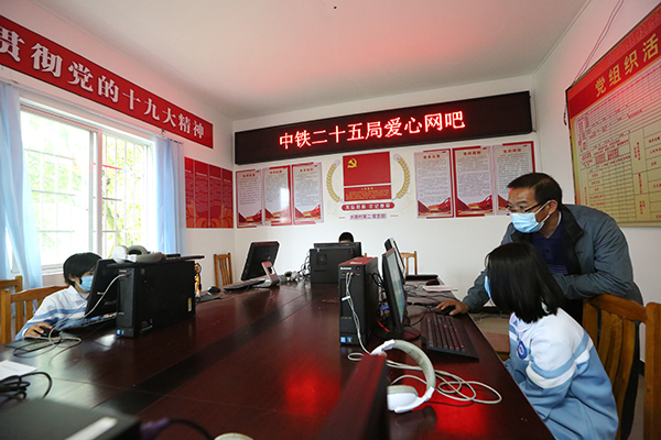 了解到情況后,中鐵二十五局精準(zhǔn)扶貧駐村工作隊(duì)主動出擊,聯(lián)合當(dāng)?shù)胤鲐氜k、教育局等部門,通過精準(zhǔn)摸排建立學(xué)生檔案,打造“愛心網(wǎng)吧”提供臨時課堂,送上電腦、手機(jī)“愛心禮包”等措施,解決孩子們的上網(wǎng)課難題。