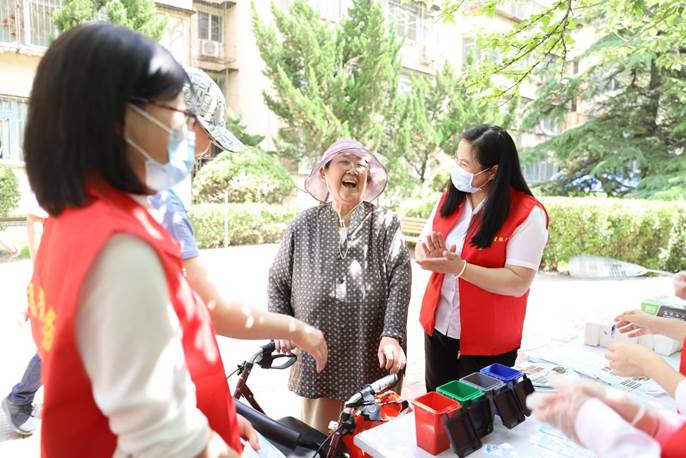 在核桃園社區,青馬學員參與志愿服務活動,并向居民講解垃圾分類知識