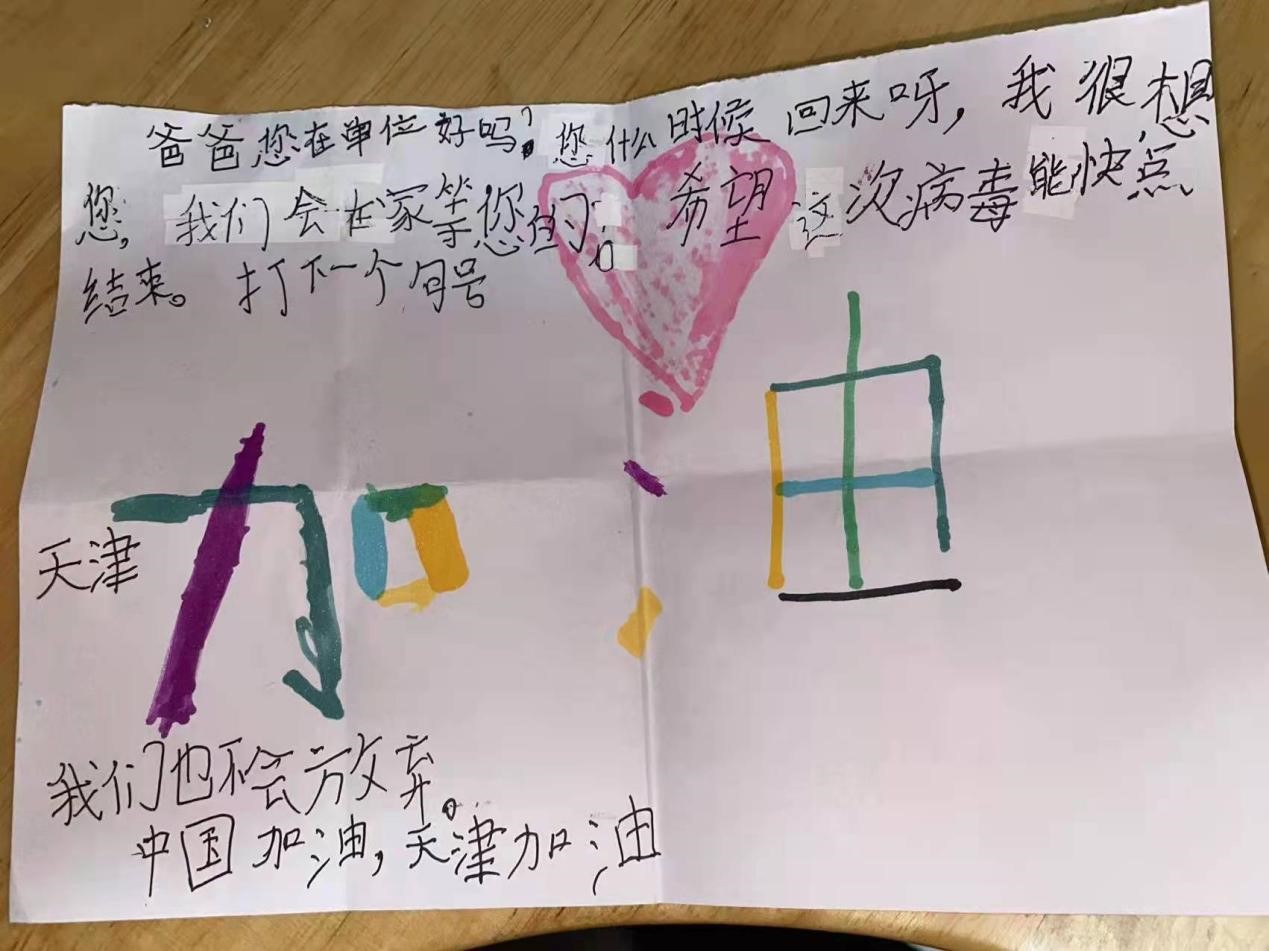 稚嫩的小手一筆一劃的書寫、一筆一劃的描摹,這清澈的童心是為心中的榜樣父親,是為可愛的天津,是為英雄的中國。念著家人的支持,感受著親情潤養,王澤偉充滿斗志,他說:“得子如此,夫復何求?!?/p>