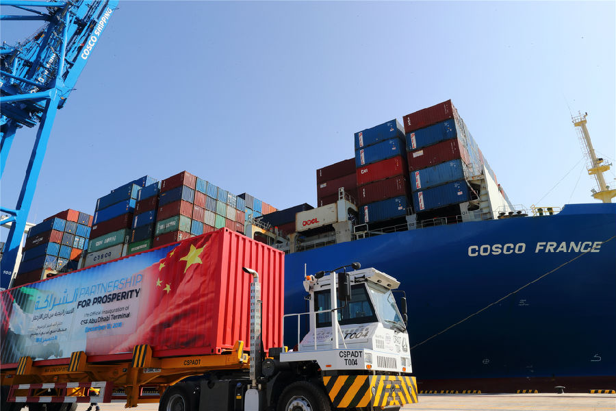 中遠(yuǎn)海運(yùn)港口阿布扎比碼頭開港照片