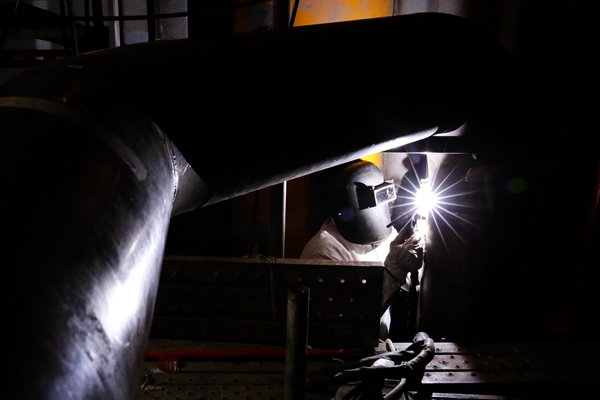 全國技術能手李志波在渤中19-6平臺上焊接銅鎳管線