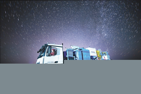 9月1日23時54分,昆侖山腳下的海油固井特種車剛完成作業,點點繁星升起。