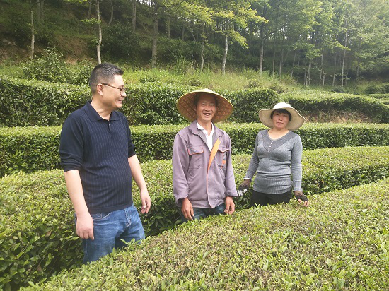 “程書記來啦,快請進?!壁w祖治看見迎面而來的程迎春就熱情打招呼。趙祖治是狀元紅生態農業合作社發起人,據他介紹:“農忙時節,程書記幾乎每天都會到狀元紅合作社的茶廠看看,了解茶廠生產和銷售情況,是程書記鼓勵我把合作社和茶廠搞起來的,這既能帶動更多的貧困戶發展茶園,還安置10個貧困戶在茶廠干活,每人的務工收入約9000元?!闭f起這些,趙祖治的臉上滿是喜悅。同樣充滿喜悅的還有保利農業發展公司老板趙福存,因為“程書記幫助我們茶廠的春茶打開了銷路,還指導我們通過網絡銷售茶葉,使寶坪的茶葉產業走上了可持續發展之路?!?/p>