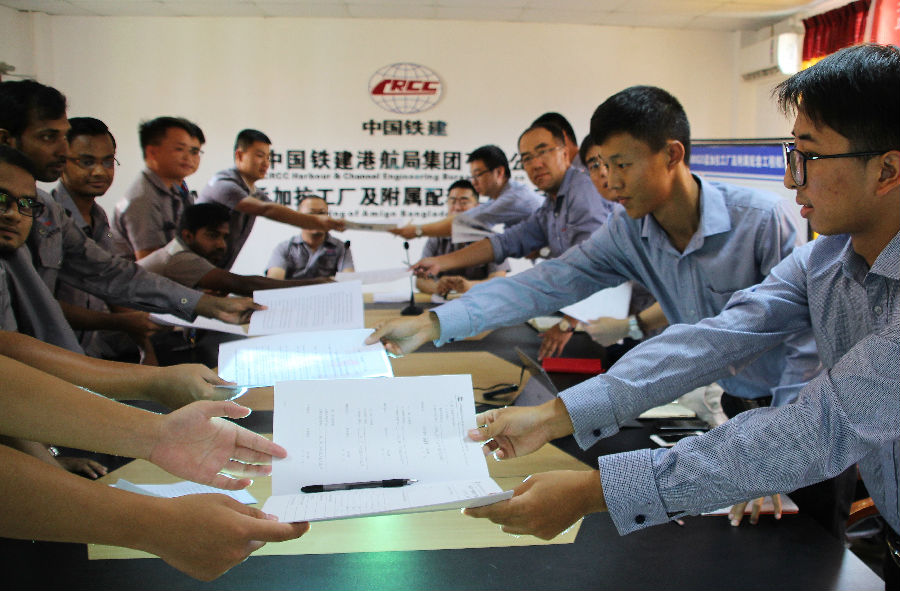 8月6日,中國(guó)鐵建港航局總承包公司所屬孟加拉項(xiàng)目部首屆中孟“導(dǎo)師帶徒”活動(dòng)順利舉行,項(xiàng)目部從各部門孟籍工程師隊(duì)伍中甄選出的6名優(yōu)秀代表,作為首批培養(yǎng)對(duì)象與中方師傅簽訂了《導(dǎo)師帶徒協(xié)議書》。作為項(xiàng)目部孟籍員工“3E”管理模式的重要一環(huán),將當(dāng)?shù)貎?yōu)秀管理人才納入“導(dǎo)師帶徒”活動(dòng)范疇,彰顯了在海外項(xiàng)目建設(shè)中履行央企社會(huì)責(zé)任擔(dān)當(dāng)。