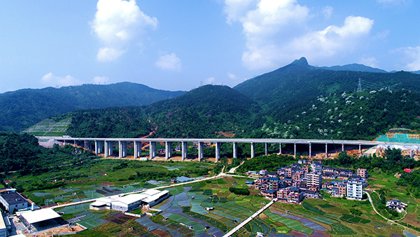 寧德沈海復線雙福高速公路是國家高速公路沈陽至??诳v線擴容工程,2018年12月28日建成通車。目前,一輛輛汽車快速穿越隧道和橋梁,行駛在雙福高速上,道路兩旁樹木郁郁蔥蔥,形成一幅“人在車上坐,車在畫中游”的“富春山居圖”。