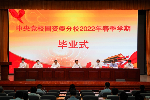 2022年春季學期,中央黨校國資委分校系統舉辦青年干部培訓班6個班次、局處級干部進修班2個班次,為國資央企培訓優秀領導干部440人,取得良好培訓效果。中央黨校教務部、國資委有關廳局(單位)負責同志,部分中央企業黨校負責同志,青干班全體學員、中央企業分校班優秀學員代表參加畢業式。畢業式上,為學員頒發畢業證書與優秀學員證書。