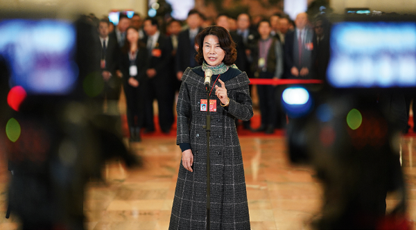 2019年3月8日下午,十三屆全國人大二次會議舉行第二次全體會議。會議開始前,大會邀請董明珠等代表在人民大會堂中央大廳接受記者的集體采訪。