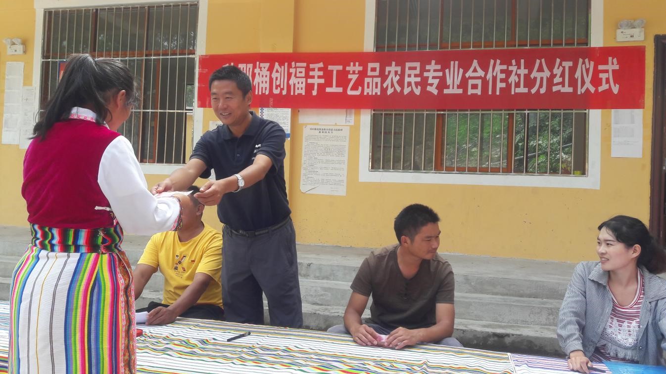 中交集團扶貧干部創辦的秋那桶村創福農民手工藝品專業合作社在舉辦分紅儀式