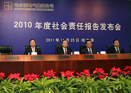 11月25日,哈電集團舉行2010年度社會責任報告發布會,這是哈電集團首次發布社會責任報告。國資委黨委委員杜淵泉出席發布會并作重要講話。
