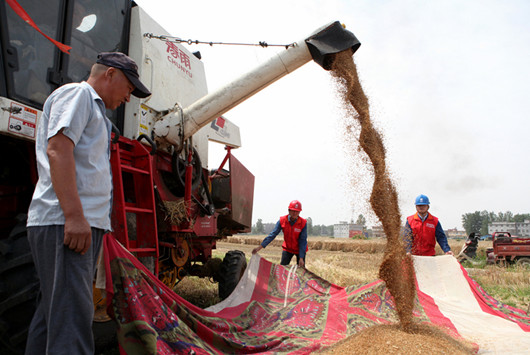 安徽臨泉供電公司員工在小麥收割現場服務“三夏”安全用電