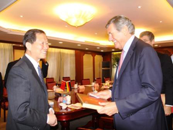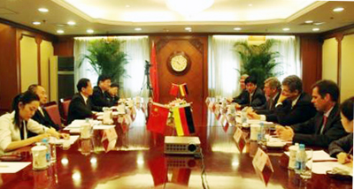 10月13日上午,國務院國資委主任李榮融在委內會見了德國蒂森克虜伯公司董事會主席舒爾茨博士一行。舒爾茨博士介紹了蒂森克虜伯公司的業務范圍及與中國企業的合作情況,并希望與更多的中央企業進行合作。榮融主任對此表示支持,并指出雙方應在技術、員工培訓和企業管理等多方面加強交流。雙方還就中國鋼鐵行業的現狀和未來發展趨勢等問題交換了意見。