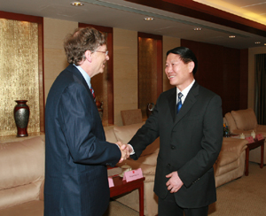 4月19日下午,國務院國資委主任李榮融會見了美國微軟公司董事長比爾·蓋茨一行。