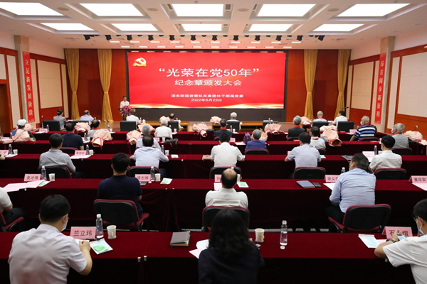 6月23日下午,國資委機關離退休干部局黨委召開“光榮在黨50年”紀念章頒發大會,為國資委機關黨齡滿50年的老黨員頒發紀念章。受國資委黨委書記、主任郝鵬委托,國資委副秘書長莊樹新出席大會,代表國資委黨委向為國家經濟建設、為國資國企改革發展事業作出突出貢獻的老領導、老同志表示崇高的敬意和衷心的感謝。