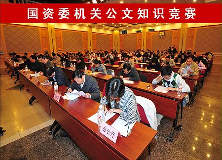 按照國資委主任王勇關于進一步提高國資委機關公文質量和辦文水平的有關要求,結合國資委機關創先爭優活動,國資委于2011年7-10月開展國資委公文知識競賽系列活動。委領導高度重視本次公文知識競賽活動,報經王勇主任同意,委機關成立了由國資委副秘書長郭建新為組長,辦公廳、人事局、管理局、機關黨委、紀委為成員的國資委機關公文知識競賽工作領導小組,并制定了競賽工作方案和具體實施計劃。7-8月,委機關公文知識競賽工作領導小組舉辦了以公文要素、公文擬制、公文運轉和檔案管理為內容的公文知識講座;9月份以委機關全體人員答題的形式進行了初賽;10月14日上午,復賽在委機關西便門、安定門辦公區同時舉行,每廳局由廳局級領導帶隊,5人組成競賽隊,進行閉卷答題,委機關25個隊共124人參加了復賽。