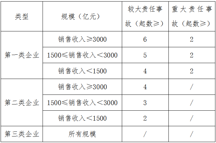 3.第三類企業。發生較大及以上生產安全責任事故且承擔主要責任的,發生重大及以上生產安全責任事故且承擔非主要責任的。