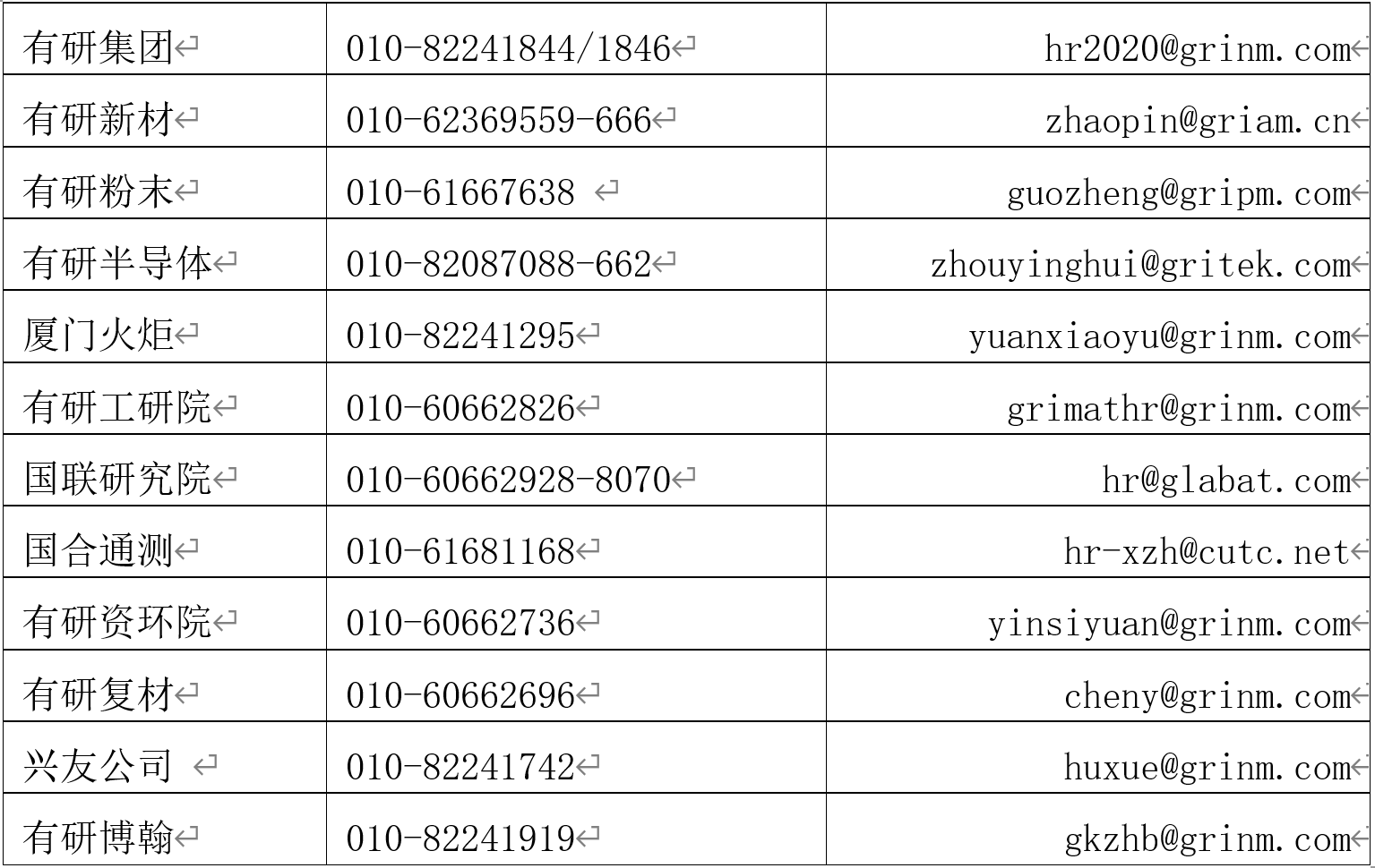 4.有研集團及所屬公司聯系方式: