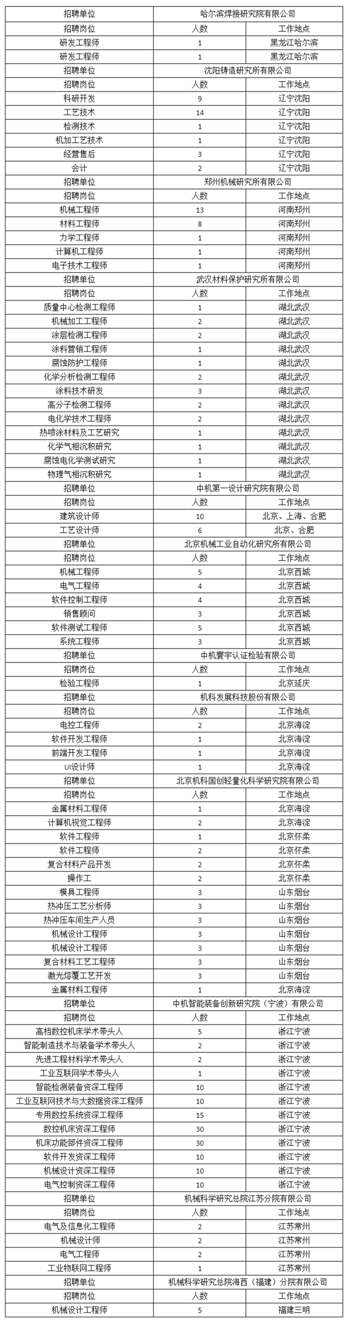 具體見《機械總院集團所屬單位招聘主要職責與任職條件》(附件1)。
