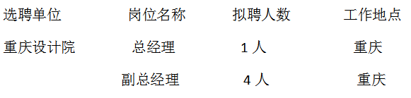 根據改革發展工作需要,集團公司決定在中煤科工重慶設計研究院(集團)有限公司(以下簡稱“重慶設計院”)試點推行職業經理人制度,面向社會市場化選聘經理層成員?,F就有關事項公告如下: