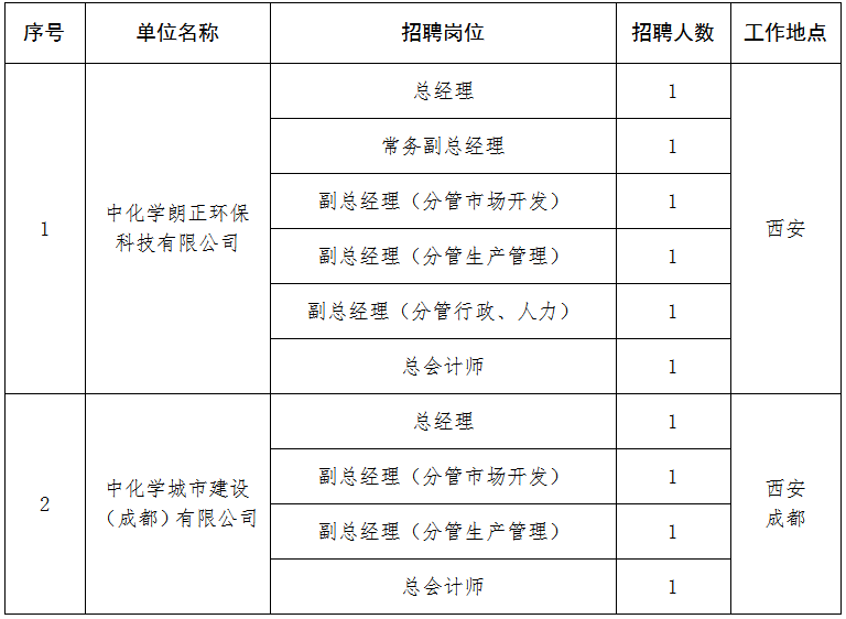 具體崗位職責和崗位任職條件見《中化學城市投資有限公司所屬企業公開選聘職業經理人崗位職責和崗位任職條件》(見附件1)。