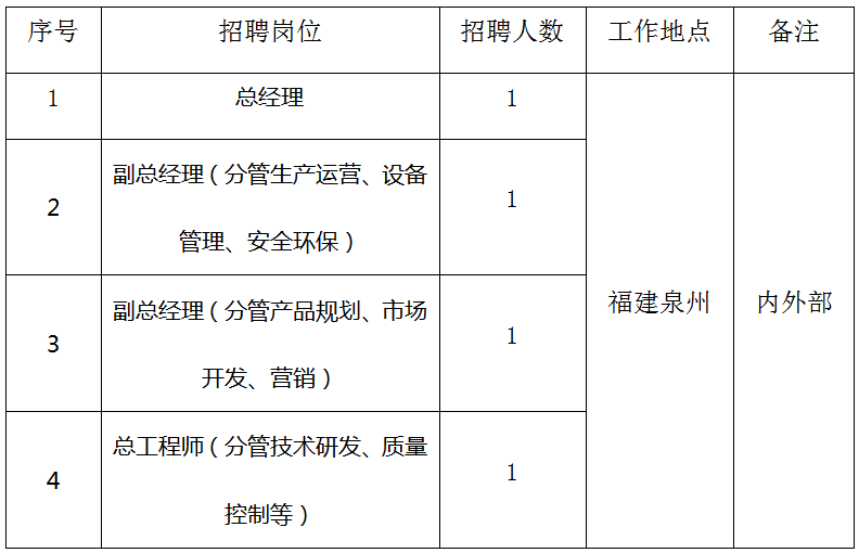為深入貫徹落實黨中央全面深化國企改革重大決策部署和集團公司深化生產經營管理組織模式改革要求,切實推進公司科改示范行動向縱深發展,根據業務發展需要,現對中化學天辰(泉州)新材料有限公司開展市場化選聘職業經理人,具體情況如下: