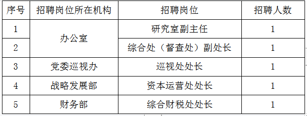 本次公開遴選集團總部5個處級管理崗位。具體崗位信息如下: