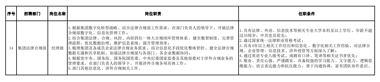 (一)集團辦公室(黨委辦公室、董事會辦公室)經理級(1人)