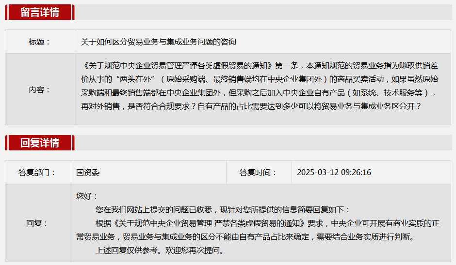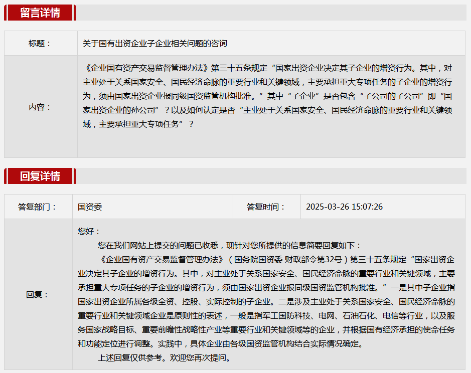 2025年3月國務院國資委網站政務咨詢欄目部分網友提出的咨詢,我們初步做出了認真的回應,現選擇五條關注度高、點擊量高的問題,再次推薦分享。