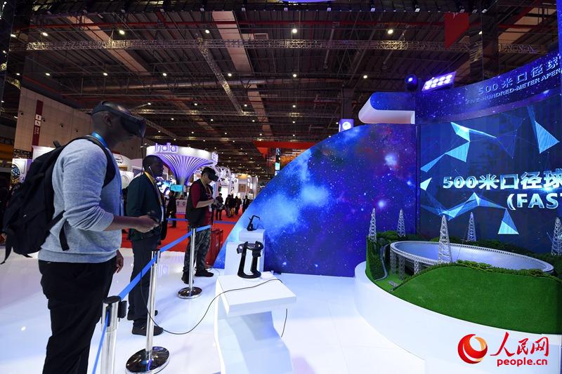 11月6日,外國觀眾在中國館體驗FAST天眼VR互動。(人民網記者 翁奇羽 攝)