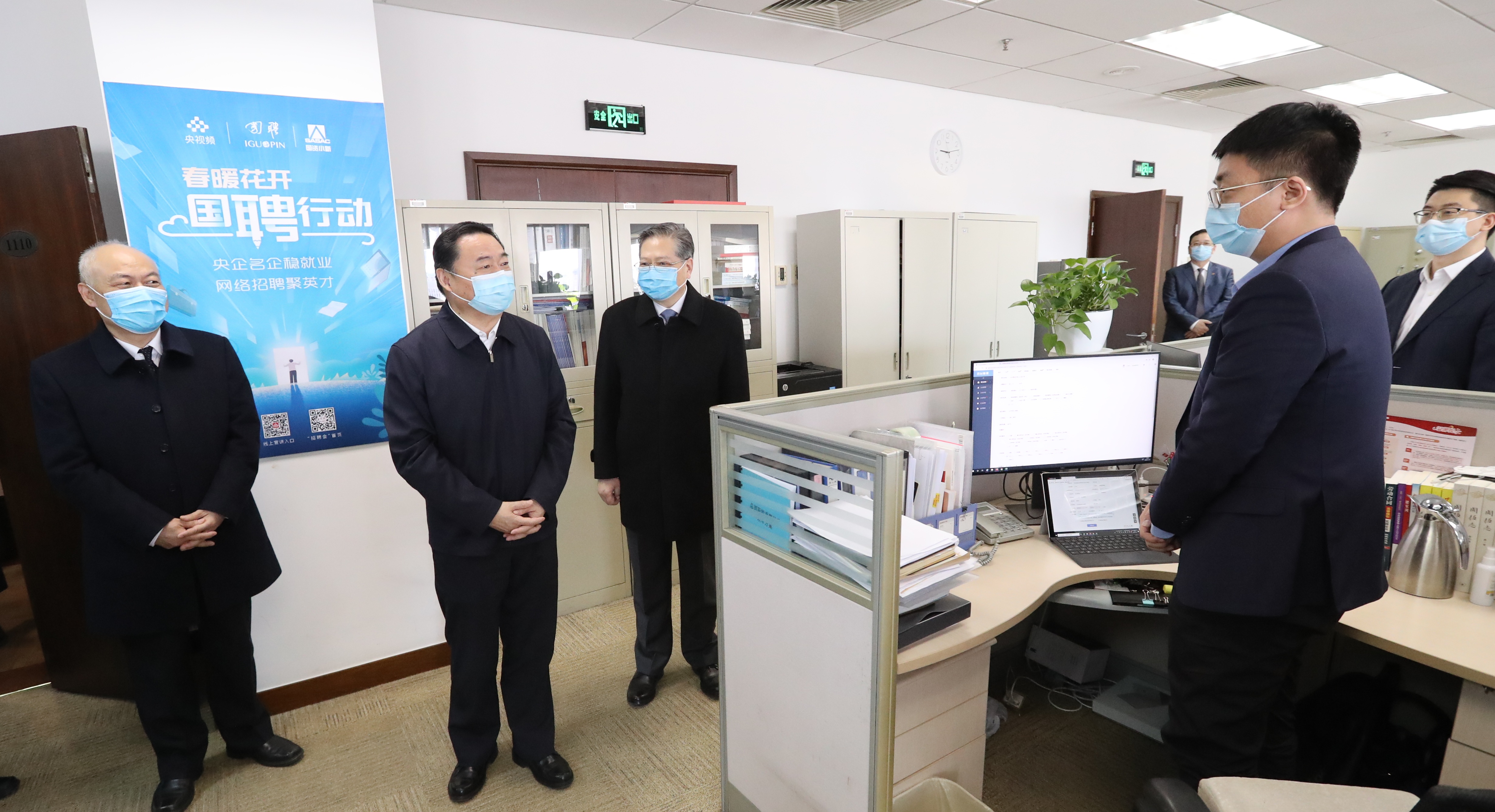郝鵬首先來到國投人力資源服務公司,詳細了解中央企業(yè)2020年春季大型網絡招聘“國聘行動”進展情況,對企業(yè)適應疫情防控,勇?lián)鐣熑?,推廣網絡“無接觸式”招聘服務用人企業(yè)和求職者促進穩(wěn)就業(yè)給予充分肯定,要求企業(yè)進一步做強做大招聘平臺,聚合更多優(yōu)質崗位資源,幫助更多高校應屆畢業(yè)生和社會求職者順利就業(yè),助力穩(wěn)就業(yè)和企業(yè)復工復產。接著,郝鵬與國投控股的梅河口市阜康酒精公司、新疆羅布泊鉀鹽公司視頻連線,要求企業(yè)在做好疫情防控同時,提高產量、保證質量,生產更多酒精、鉀肥等產品,保障疫情防控和春耕生產需要。