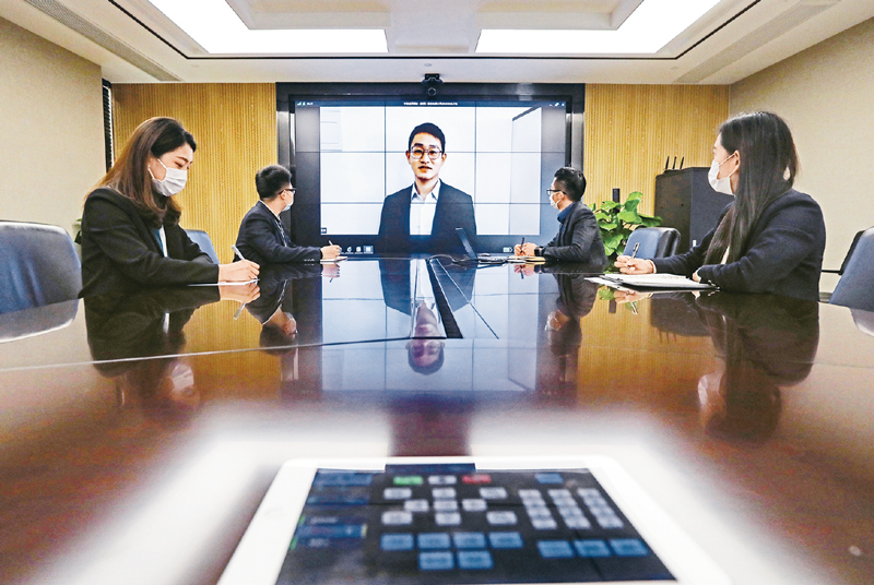 隨著疫情防控和復工復產有序推進,要優化招用工舉措,著力推進線上就業服務和技能培訓,推動市場供求匹配,保障企業用工和勞動力就業應聘雙向需求。圖為2020年3月3日,在浙江省寧波市江北區的一家公司,一場線上“云面試”正在進行,負責招聘面試的工作人員通過遠程視頻連線,和在家里的求職者進行線上對話。 人民圖片 章勇濤/攝