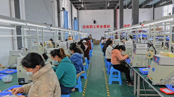 楊國(guó)敏已連續(xù)多月蟬聯(lián)生產(chǎn)效率榜榜首,工資每月最高可以拿到4千多,她一邊熟練地組裝著手里的器件,一邊說道:“在搬遷之前我就發(fā)愁以后要怎么謀生,沒想到幫扶單位中國(guó)有色集團(tuán)早為我們謀劃好了工作問題。通過參加組織的培訓(xùn),我們提高了技能熟練度,在家門口從農(nóng)民變成了藍(lán)領(lǐng)工人,現(xiàn)在,車間的員工人均每月都能拿到3000多的工資?!?/p>