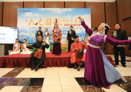 在中日航線開通45周年之際,集團(tuán)以優(yōu)秀傳統(tǒng)文化推廣交流活動(dòng)為載體,聚焦一個(gè)中國地域、幾種非物質(zhì)文化遺產(chǎn),在中國駐日本東京大使館組織“人文國航走進(jìn)日本之相約內(nèi)蒙古”活動(dòng),活動(dòng)現(xiàn)場播放內(nèi)蒙古全球推廣宣傳片,并由內(nèi)蒙古藝術(shù)家現(xiàn)場表演馬頭琴、呼麥、長調(diào)等內(nèi)蒙古非物質(zhì)文化遺產(chǎn)藝術(shù)作品;國航合唱團(tuán)在活動(dòng)中獻(xiàn)唱中日名曲,促進(jìn)世界文化交流,加深中日友誼;在國際傳播過程中,國航注重以文化融合為思路舉辦海外市場品牌落地活動(dòng),在公關(guān)活動(dòng)中將中國文化與企業(yè)文化相結(jié)合,打造中國風(fēng)沉浸式場景體驗(yàn),輸出中國文化特色與國航品牌理念,2019年國航分別在英國和法國舉辦“Land of Luck”、“Unexpected China”兩場落地活動(dòng),吸引了大量當(dāng)?shù)芈每偷闹鲃?dòng)關(guān)注、參與、傳播,增強(qiáng)了中華文化的影響力和國航品牌的親和力。