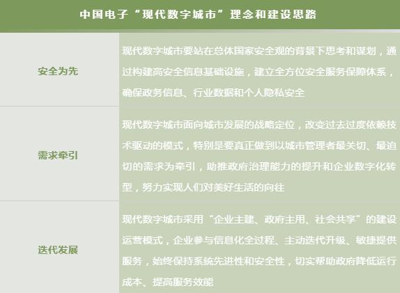 2019年5月,作為落實“數(shù)字中國”戰(zhàn)略的重要舉措,在第二屆數(shù)字中國建設(shè)峰會上,中國電子董事長、黨組書記芮曉武首次系統(tǒng)闡述了“現(xiàn)代數(shù)字城市”理念和建設(shè)思路,秉持“安全為先、需求牽引、迭代發(fā)展”的原則,采取“替代+升級”“運營+服務(wù)”模式,致力于打造“數(shù)字中國”樣板工程,為實現(xiàn)“治理能力現(xiàn)代化、治理體系現(xiàn)代化、經(jīng)濟體系現(xiàn)代化”奠定堅實基礎(chǔ)。