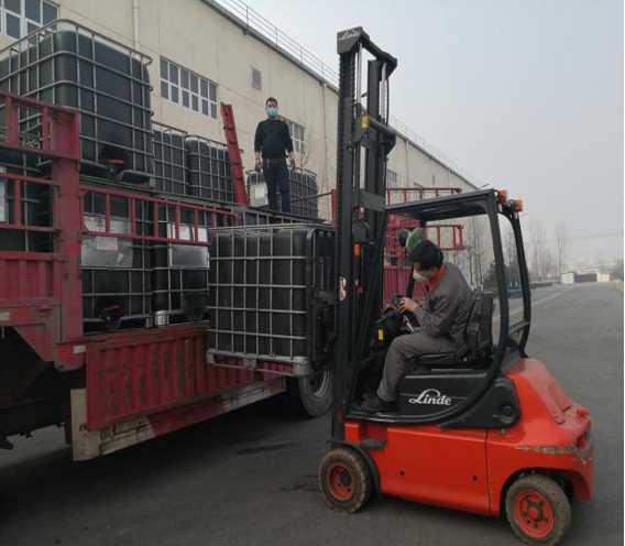工作人員正在裝運液壓支架濃縮液、防凍液