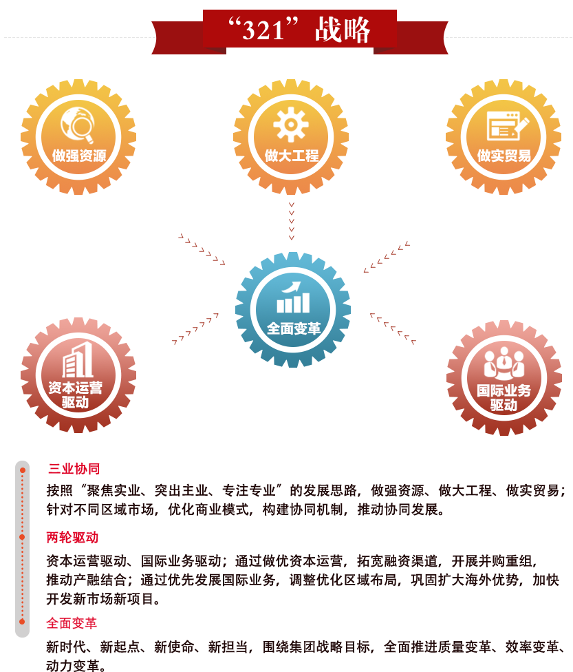中國有色集團是我國有色金屬工業最早實施“走出去”戰略、國際化經營成果最豐碩的企業之一,位居“中國企業全球化50強”第18位,“中國100大跨國公司”第38位,榮獲全國“五一”勞動獎狀、感動非洲的十大中國企業、中國有色金屬工業境外資源開發戰略功勛企業等稱號。