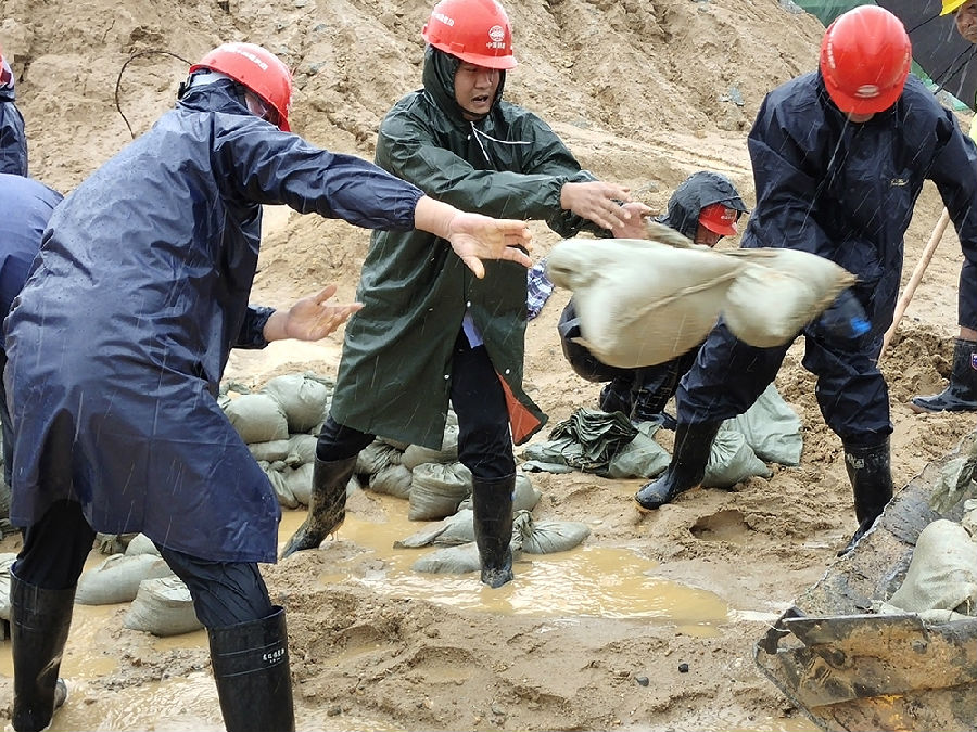 中鐵城建集團(tuán)青山湖安置房項(xiàng)目迅速成立黨員先鋒隊(duì)和青年突擊隊(duì),進(jìn)行道路排水搶修,調(diào)配啟用應(yīng)急救援設(shè)備,設(shè)置12個(gè)抽水點(diǎn),安置14臺(tái)大功率水泵,搶運(yùn)受災(zāi)物資,在基坑西側(cè)堆碼沙袋堵水,幫助街道社區(qū)恢復(fù)出行,確保全市安全度汛。