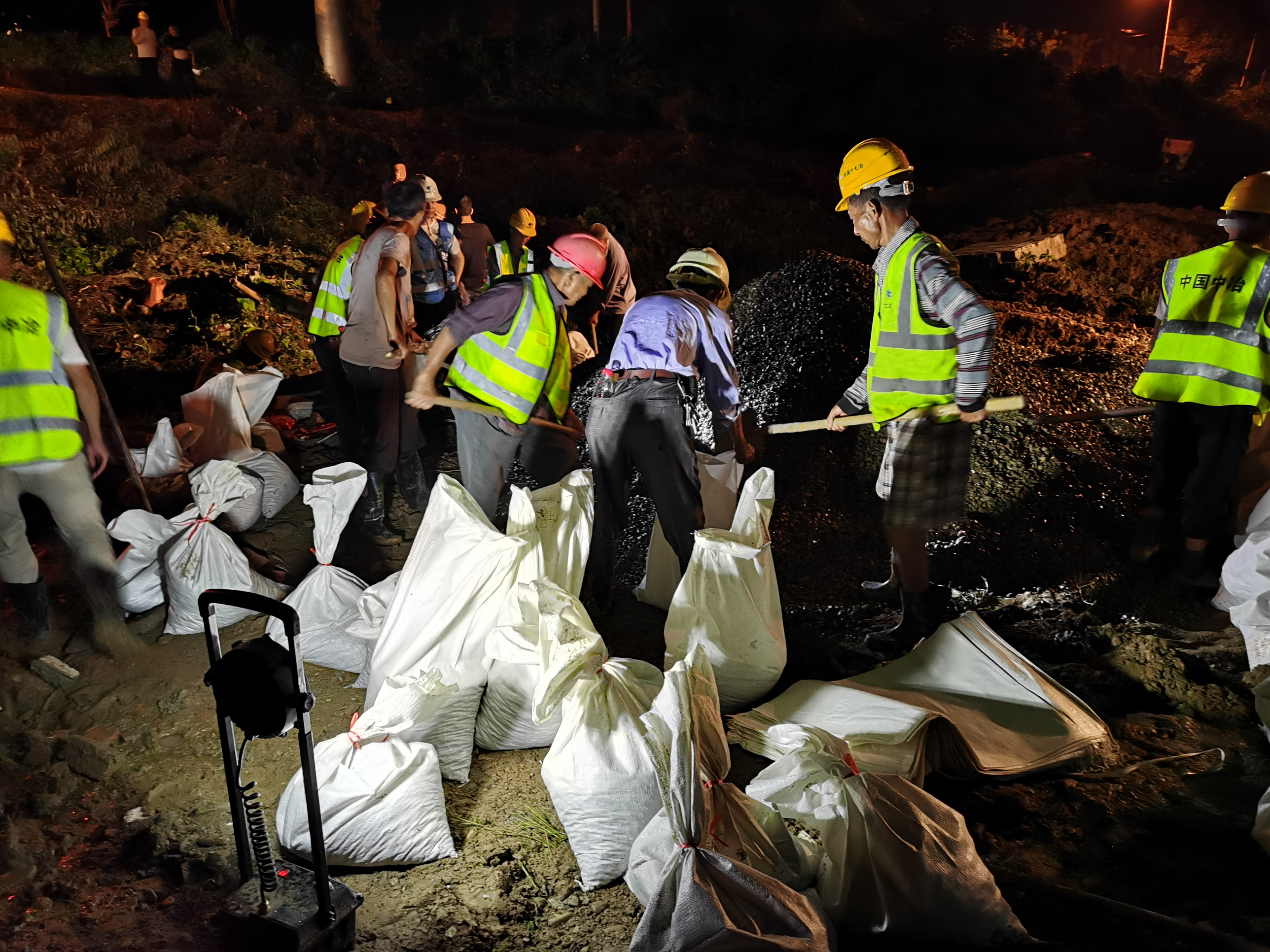 中冶建工蕪湖市鳩江區新建安置房項目部緊急成立黨員突擊隊,迅速支援當地防汛搶險工作,堅決筑牢防御洪水最后屏障。根據統一部署,項目部共集結精干應急救援力量53人,籌備應急救援物資包含挖掘機9臺、平板拖車5輛、粉噴樁機2臺、物資運輸設備2臺、排澇設備8套、救援車輛11臺及其他防汛物資若干,火速趕赴蕪湖市鳩江區二壩翟灣開展堤壩搶險加固工作。在4個多小時的救援工作中,項目部防汛救援小組以人拉肩扛的方式裝袋運送1200袋防汛沙包,使堤壩鞏固加高約60厘米,圓滿完成了230余米長防洪堤壩加固任務。