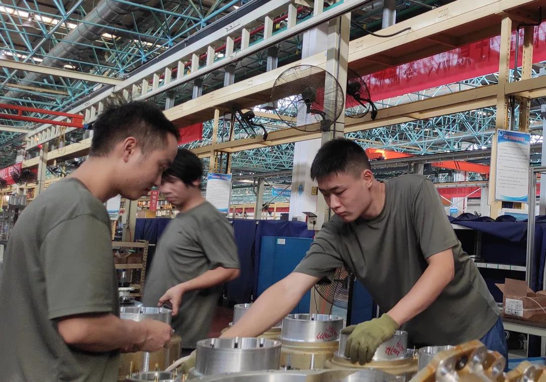 江麓集團二分廠入職不到三年的00后一線員工,跟著師傅勤學苦干,用行動展示了00后的擔當。勞模、標兵、生產骨干們帶頭干,技術后勤齊保障,揮汗如雨戰高溫,團結協作破難題,創造了單月交付新紀錄。