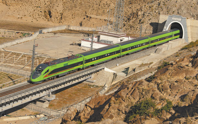 中國中車自主研制的復興號高原動車組駛出拉林鐵路嘎拉山隧道。2021年6月25日,全長435公里的拉林鐵路建成通車,西藏首條電氣化鐵路建成,同時復興號實現對31個省區市全覆蓋。