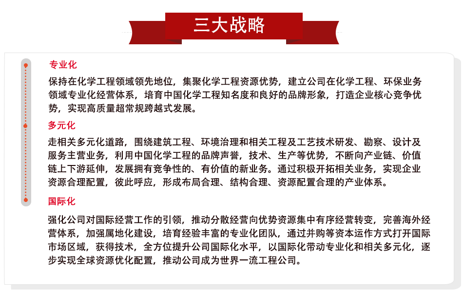 中國化學堅持創新驅動發展戰略,目前擁有12家國家級企業技術中心、1家國家能源研發中心、5家省級企業技術中心、8家省級工程技術研究中心、6家博士后科研工作站,19家國家高新技術企業,支撐公司技術創新和研發工作。
