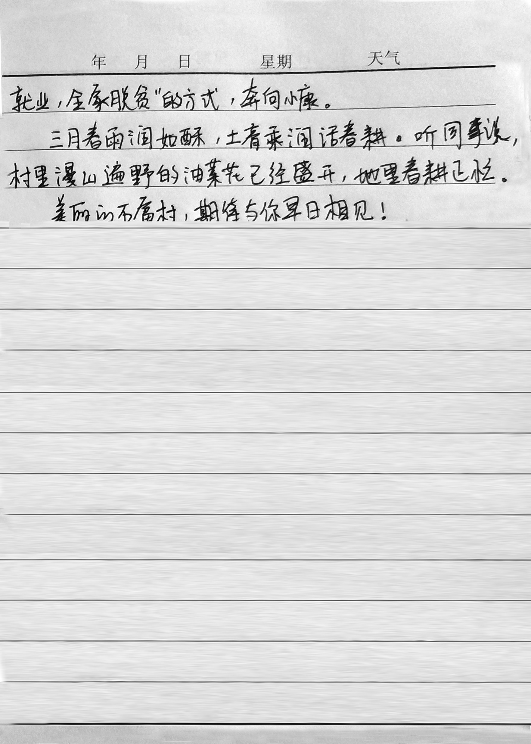 程亮每晚都對一天的情況進行總結,并堅持撰寫扶貧日記。