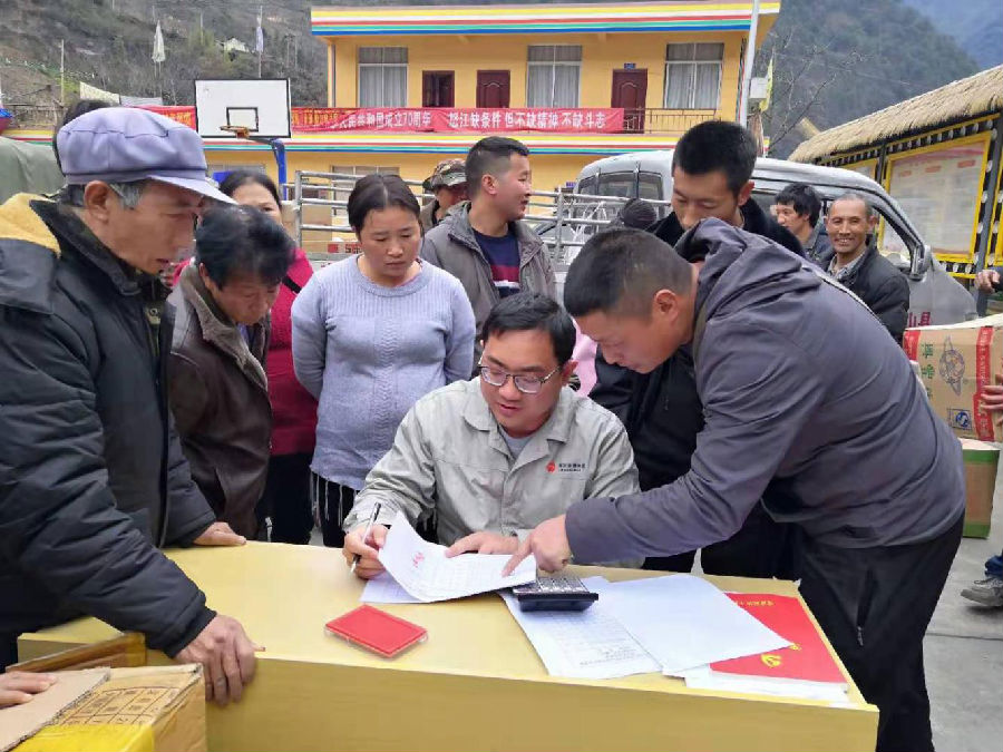 國(guó)家能源集團(tuán)云南新能源公司員工在掛靠幫扶點(diǎn)為村民發(fā)放登記土雞苗