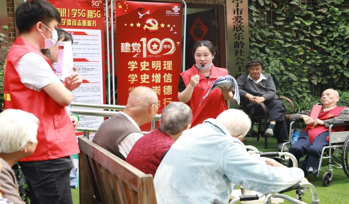 中國聯(lián)通南寧分公司志愿服務(wù)隊(duì)走進(jìn)新陽真情養(yǎng)老院開展“學(xué)黨史 憶初心”志愿服務(wù)活動,組織黨史知識有獎競答并普及防范電信網(wǎng)絡(luò)詐騙知識