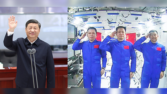 2021年6月23日,習近平同神舟十二號航天員親切通話
