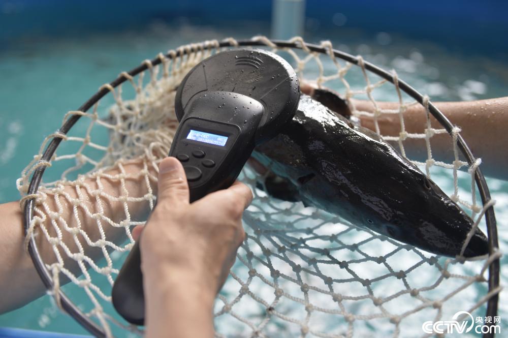 6月10日,在地處湖北宜昌的三峽集團中華鱘研究所(長江珍稀魚類保育中心)養殖車間里,研究員杜合軍博士正在檢查植入PIT芯片的中華鱘。中華鱘是一種古老魚種,有“水中大熊貓”之稱,自1984年以來,三峽集團中華鱘研究所累計放流64次,向長江中放流多種規格的中華鱘504萬尾。