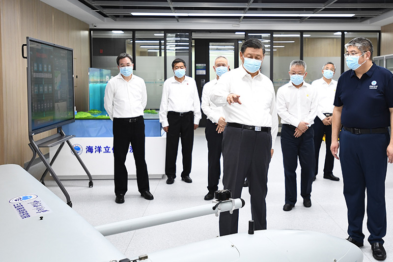 2022年4月11日,習近平來到中國海洋大學三亞海洋研究院,了解海洋觀測設備與信息服務系統(tǒng)研發(fā)應用情況,連線“深海一號”作業(yè)平臺。前方工作人員向總書記匯報了一線工作情況。習近平向他們表示誠摯問候,囑咐他們注意安全、保重身體。習近平強調(diào),建設海洋強國是實現(xiàn)中華民族偉大復興的重大戰(zhàn)略任務。要推動海洋科技實現(xiàn)高水平自立自強,加強原創(chuàng)性、引領性科技攻關,把裝備制造牢牢抓在自己手里,努力用我們自己的裝備開發(fā)油氣資源,提高能源自給率,保障國家能源安全。