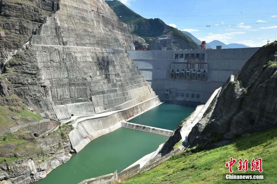 白鶴灘水電站攔河壩為混凝土雙曲拱壩,最大壩高289米,壩頂高程834米。圖為白鶴灘水電站。