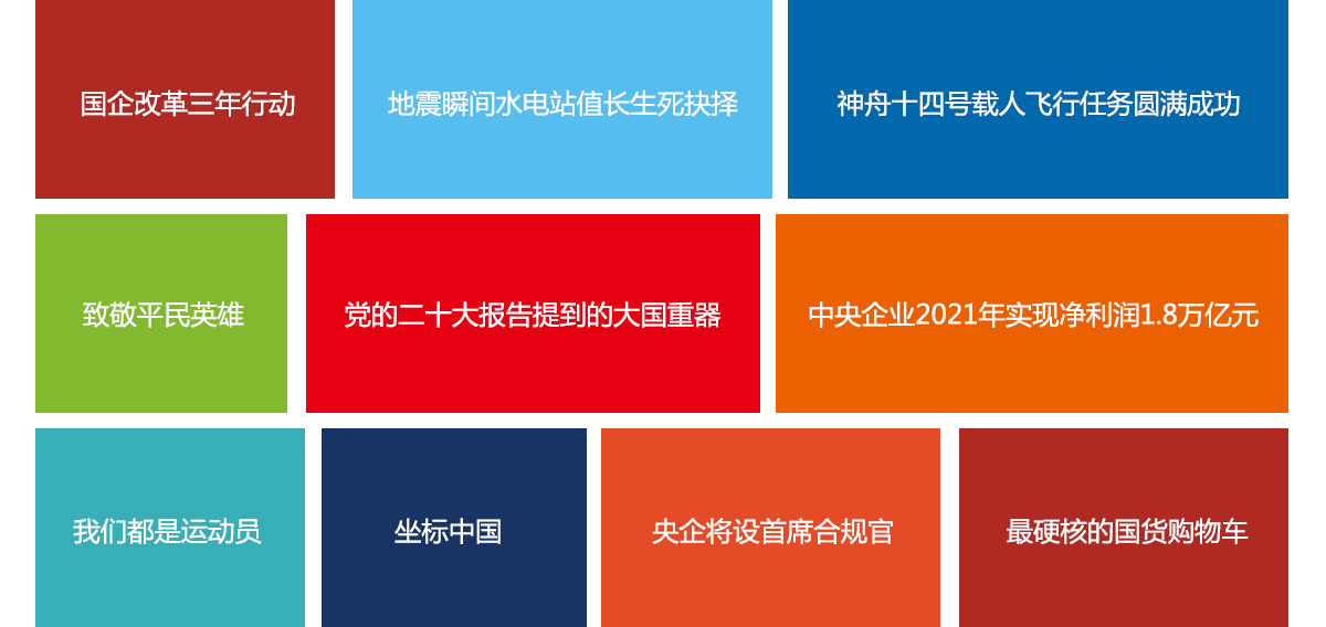 2013年以來,國務院國資委新聞中心已連續十年發起國企足跡年度盤點。經過國資委網站、“國資小新”、《國資報告》雜志結合大數據分析和專家意見,千萬網友和粉絲熱情參與網絡投票,最終用閱讀量和投票數火熱“頂”出今年的“央企十大國之重器”“央企十大超級工程”“央企十大熱搜 ”“央企十大暖鏡頭”“央企海外十大精彩瞬間”“中國企業年度漢字”等,讓我們一起來回顧、紀念、致敬這極不平凡的2022年。