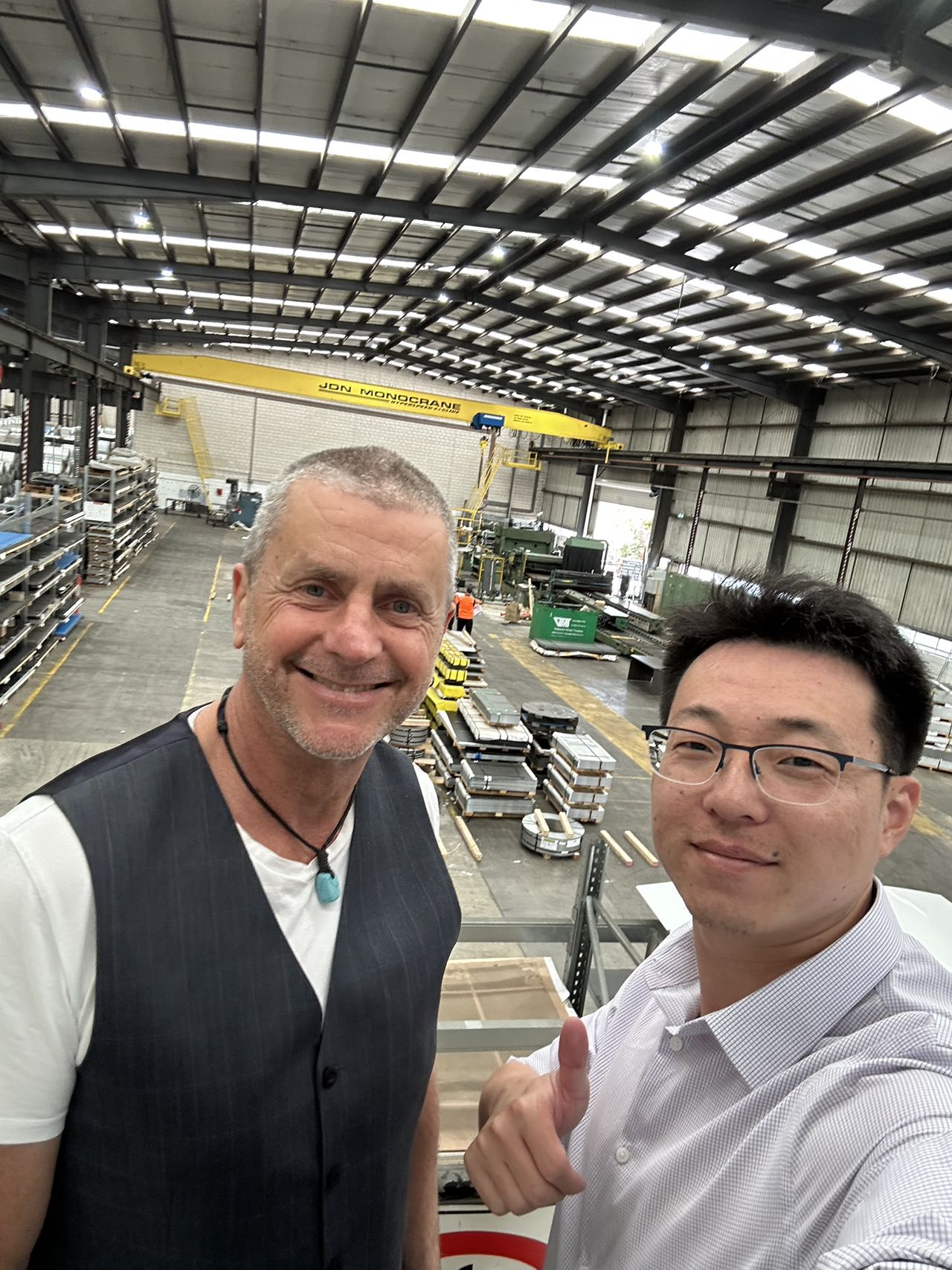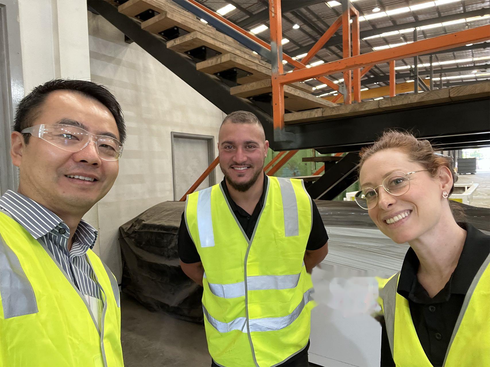澳籍員工Simon(左一)在墨爾本進行鋼板板型質量客戶回訪