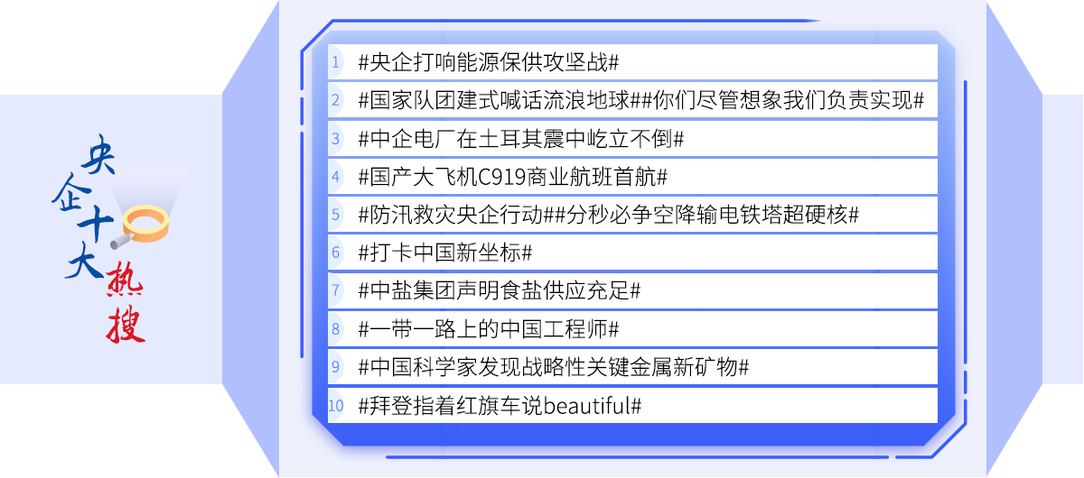 2013年以來,國務院國資委新聞中心已連續11年發起國企足跡年度盤點。經過國資委中英文官網、“國資小新”、《國資報告》雜志結合大數據分析和專家意見,千萬網友和粉絲熱情參與網絡投票,最終“頂”出今年的“央企十大超級工程”“央企十大國之重器”“央企十大暖鏡頭”“央企海外十大精彩瞬間”“央企十大熱搜 ”,讓我們一起來回顧、致敬這極不平凡的2023年。